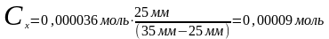 n=V∙c=0.0045 л∙0,008 моль/л = 0,000036 моль