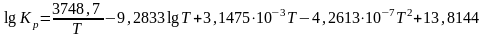 В табл. 1 приведены значения констант равновесия реакции (1) при различных давлениях и температурах: