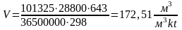Пересчитаем объем газа из нормальных условий в условия реактора: