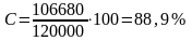 Так как в реактор поступает 120 000 кг/ч оксида углерода, а на образование метанола израсходуется 106 680 кг/ч СО, то селективность процесса составит: