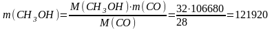 Таким образом, расходный коэффициент оксида углерода на получение 1 тонны метанола составит: