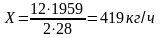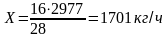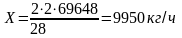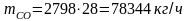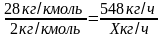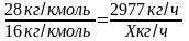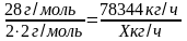 78344 кг/ч – расход СО, 9950 кг/ч – расход водорода на целевую реакцию (1).