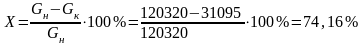 Конверсию исходного сырья рассчитываем как отношение количества израсходованного сырья (СО+Н2) – (Gн - Gк), где Gк – количество непрореагировавшего водорода, к общему количеству сырья в начале процесса Gн: