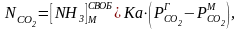 – количество диоксида углерода, поглощенного в единицу времени единицей поверхности раствора, моль/м3;