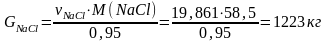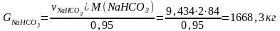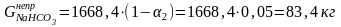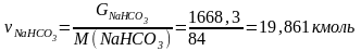 Из предыдущих расчетов получена масса NaHCO3 равная 1668,3 кг и используем её для дальнейших расчетов.
