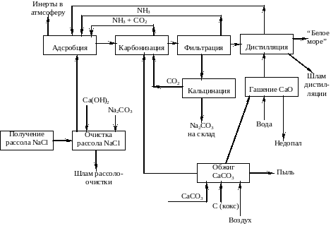 Описанные стадии можно показать в виде принципиальной схемы производства кальцинированной соды, которая и изображена на рис. 3.1.