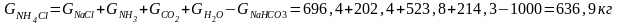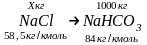 Рассчитаем массу NaCl, NH3, CO2, H2O необходимую для получения 1000 кг NaHCO3.
