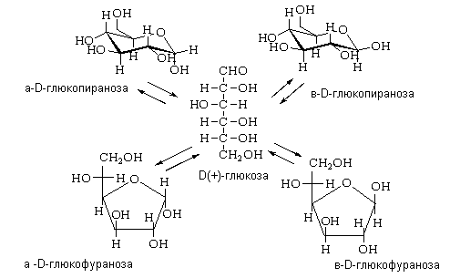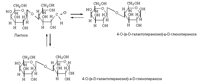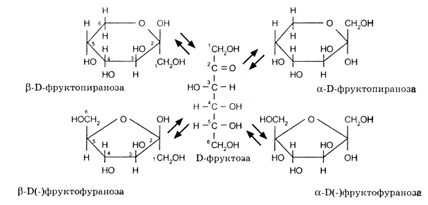 Данным сахарам также присуща мутаротация, и они существуют в - и -формах. в циклических и альдегидной таутомерных формах, находящихся в динамическом равновесии: