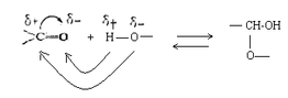 Отсюда, появление пятого гидроксила, названного гликозидным, является следствием внутримолекулярной реакции между карбонильной группой и одним из гидроксилов сахара. Известно, что взаимодействие альдегидов (кетонов) со спиртами приводит к образованию полуацеталей (полукеталей):