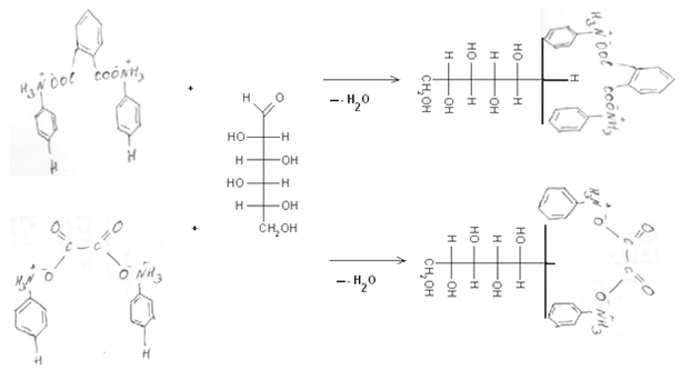 Полосу, опрыснутую резорцинфосфатом, прогревают 3—4 мин. в сушильном шкафу при температуре 85—95ºС. Пятна фруктозы, сахарозы, раффинозы и олигосахаридов, содержащих фруктозу, окрашиваются в интенсивно розовый цвет. При нагревании хроматограммы, опрыснутой раствором хлормочевины, в течение 5 мин. при 105 ºС пятна альдоз принимают синее окрашивание. Полосу, обработанную раствором анилинфталата или анилиноксалата, нагревают при 105—110 ºС. При обработке хроматограммы анилинфталатом глюкоза и галактоза проявляются в течение 5 мин. при 105°С в виде желтовато-коричневых пятен; пятна пентоз вишнево-красного цвета. Мальтоза и лактоза дают желто-коричневые пятна при нагревании в течение 20 мин. при 105 ºС. При проявлении анилиноксалатом (110°С, 5—6 мин.) пятна альдоз имеют коричневое окрашивание. Проявленные контрольные полосы (а), (б) и (в) прикладывают к основной части хроматограммы (в) и таким образом определяют положение пятен отдельных сахаров на полосе (в), не проявляя ее. Участки бумаги, содержащие не проявленные пятна глюкозы, фруктозы, сахарозы и олигосахаридов, вырезают, разрезают на маленькие кусочки («лапшу») и элюируют сахара водой три раза по 30 мин. при 60—70°. Элюаты фильтруют через маленькие бумажные фильтры, выпаривают на водяной бане до небольшого объема, снова фильтруют и доводят до определенного объема. В растворе определяют содержание сахара с помощью антронового реактива.