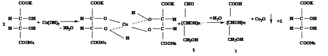 a 24 г карбоната натрия и 12 г тартрата калия — натрия (калий натрий виннокислый средний) помещают в коническую колбу вместимостью 500 см3 и добавляют 250 см3 дистиллированной воды. Затем приливают 40 см310 % раствора сульфата меди, перемешивают и добавляют 16 г гидрокарбоната натрия.