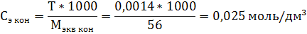 Теперь вычислим молярную концентрацию эквивалента раствора КОН: