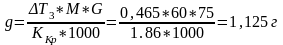 Молярная масса мочевины равна 60 г/моль. Понижение температуры замерзания раствора ∆ТК = 0,465 °С.