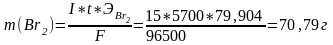 Тогда по законам Фарадея можно найти массу водорода и брома, которые выделяются соответственно на катоде и на аноде.