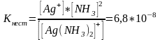 При данной температуре величина константы нестойкости есть величина постоянная. Чем меньше константа нестойкости, тем устойчивее комплекс, поэтому наибольшая концентрация ионов серебра будет в растворе, содержащем комплексный ион [Аg(NНз)2]+.
