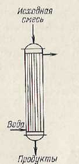 Для непрерывного осуществления таких реакций, но в более интенсифицированном режиме (синтез гликолей при катализе фосфорной кислотой, получение этаноламинов под давлением), наиболее подходят кожухотрубные реакторы (рисунок 3). В них обратное перемешивание незначительно, и процесс протекает с более высокой селективностью.