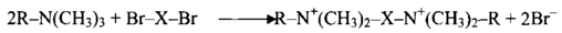 Катионные димерные ПАВ, например соединения 1-3 на рис. 2, обычно получают по реакции алкилдиметиламинов с б,щ-дигалогенпроизводными. Ди-бром-соединения обладают наибольшей реакционной способностью и обычно используются для синтеза в лабораторных условиях, дихлор-производные предпочтительнее в условиях крупномасштабного синтеза: