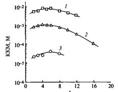 Значения KKM димерных ПАВ с гибкими мостиками, независимо от того гидрофильные они или гидрофобные, гораздо ниже, чем у соответствующих ПАВ с жесткими мостиками. Этот факт можно объяснить тем, что соединения первого типа легче упаковываются на поверхности вода - воздух. Опубликованы данные о том, что KKM димерных ПАВ более чем в 80 раз ниже KKM мономерных ПАВ с одинаковыми гидрофобными радикалами и полярными группами.