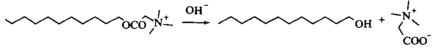 Рис. 16. Щелочной гидролиз катионного ПАВ, обладающего бактерицидным действием, с образованием алифатического спирта и бетаина