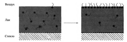 Рис. 1. Миграция ПАВ внутри пленки лака приводит к обогащению поверхности поверхностно-активным веществом