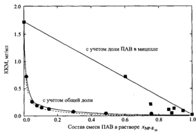 . Тогда KKM смеси ПАВ можно записать следующим образом: