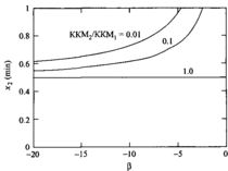 Зависимости оптимальных составов смесей ПАВ от параметра в для смесей ПАВ с разными соотношениями KKM индивидуальных ПАВ: ККМ2/ККМ1 = 1,0.1 и 0.01. Видно, что оптимальные композиции ПАВ сильно зависят от параметра