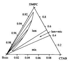 Фазовая диаграмма смесей лецитина и СТАВ. Ламеляр-ные фазы лецитина легко набухают при введении в бислои заряженного ПАВ