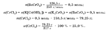 2. По количеству хромата бария (осадок желтого цвета) рассчитаем количество вещества, массу и массовую долю CrCl3: