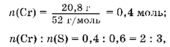 Решая уравнение, находим, что - = 52 г/моль, следовательно, элемент М — это хром.