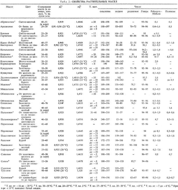 В результате длит. хранения на свету, при повыш. т-ре или под действием микроорганизмов растительные масла портятся-прогоркают. Неприятный запах и вкус растительным маслам сообщают продукты окисления жирных к-т (альдегиды, кетоны, гидроксикисло-ты), низкомол. жирные к-ты и их глицериды, продукты распада каротиноидов, стеринов, витаминов, фосфолипи-дов.