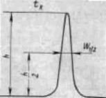 tR — время удерживания пика; h — высота пика; W1/2 — ширина пика на половине его высоты