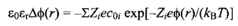 Электростатический потенциал связан с распределением заряда уравнением Пуассона-Больцмана: