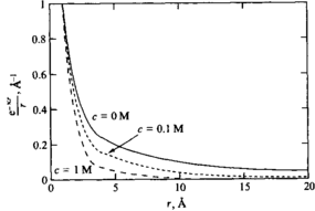 Дебаевский радиус экранирования - очень важная величина, использующаяся для качественных и количественных оценок. Из уравнения следует, что вклад электростатических взаимодействий снижается на расстояниях