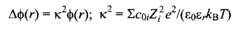Физический смысл этого вывода заключается в том, что центральный ион притягивает противоположно заряженные ионы и отталкивает ионы одного с ним заряда, создавая таким образом экранирование. Другое важное и тоже простое уравнение получено для избыточного химического потенциала, который, согласно теории Дебая-Хюккеля, имеет следующий вид: