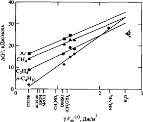 , где г - поверхностное натяжение растворителя, V - его молярный объем. У воды параметр Гордона очень высокий, а у гексана - очень низкий.