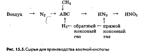 В настоящее время в промышленных масштабах азотная кислота производится исключительно из аммиака. Поэтому структура сырья азотнокислотного производства совпадает со структурой сырья для производства аммиака, как это видно из рис. 2.1.