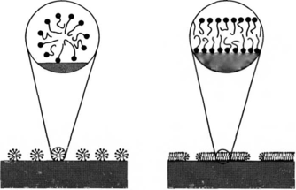 При отсутствии сильных специфических взаимодействий между гидрофильной поверхностью и полярными группами молекул ПАВ последние самоорганизуются на поверхности в дискретные мицеллы.