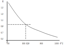 Константа равновесия реакции может быть рассчитана по эмпирическому уравнению:
