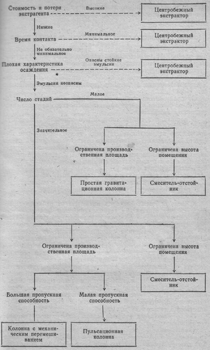 При выборе типа экстракционного аппарата для осуществления заданного технологического процесса необходимо учитывать: