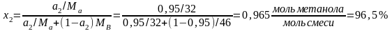 Рассчитать тарельчатую ректификационную колонну непрерывного действия для разделения бинарной смеси метанол – этанол, подаваемой в колонну при температуре равной температуре кипения. Колонна работает под атмосферным давлением. Исходные данные: расход g1 = 4,2 кг/с, процентные массовые концентрации: исходной смеси a1 = 32%, дистиллята a2 = 95%, кубового остатка a0 = 2%, коэффициент избытка флегмы 4, давление греющего пара Pгр =1,5 ата, начальная температура охлаждающей смеси t’в = 18 0C.