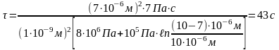 =7 мкм, внешнее давление P1=8 МПа=8∙106 Па, начальное давление внутри поры P2=105 Па (атмосферное давление), радиус пор R=1 нм. Расчёт провести по соотношению