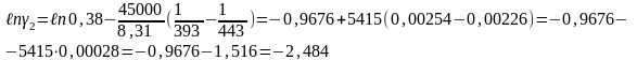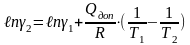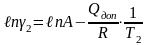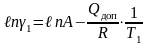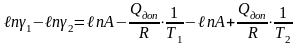 (2), где А-предэкспоненциальный множитель; Qдоп- тепловой эффект взаимодействия между связующим и наполнителем; Q- тепловой эффект рассматриваемого обратимого процесса, найти массовую долю γ2 переходного слоя в системе анилино-фенолоформальдегидная смола СФ-342А – полипропиленовая нить ППН при температуре Т2=443 К, если при Т1=393 К известно значение γ1=0,38. Тепловой эффект Qдоп взаимодействия ППН со связующим в данном случае составляет Qдоп=-45 кДж/моль. Рекомендуется записать соотношение (1) в логарифмической форме для температуры Т1 и для температуры Т2.