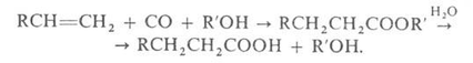RCH=СН2 + СО + Н2О → RCH2CH2COOH;