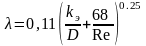 kэ – эквивалентная абсолютная шероховатость стенки трубы, см