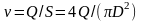 Определяют среднюю скорость течения эмульсии в трубопроводе: