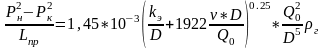 где Рн, Рк – соответственно начальное и конечное абсолютное давление газа на расчетном участке трубопровода, атм.