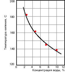 На рисунке приведена зависимость температуры кипения тормозной жидкости Роса от объемной концентрации в ней воды.