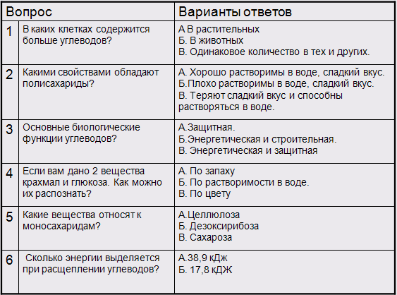 | Группы углеводов | Особенности строения молекулы | Свойства углеводов |