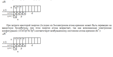 Так как последний электрон находится на p-подуровне, то кремний относится к электронному p-семейству. Распределение электронов по квантовым ячейкам у атома кремния в нормальном состоянии: