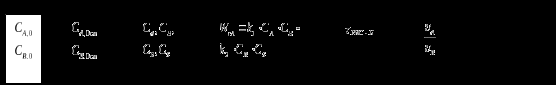 Определить объём реактора идеального смешения непрерывного действия (РИС-Н), каскада реакторов идеального смешения (К-РИС), реактора идеального вытеснения (РИВ), при проведении реакции второго порядка: 2А R+S.